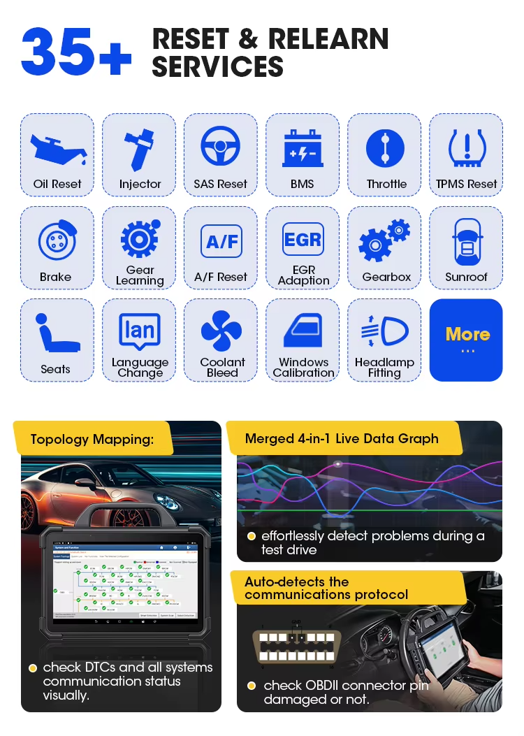 5. 车型覆盖广、诊断功能强(支持智能诊断、远程诊断、在线编程、智能维修生态服务系统)、诊断数据准确、特殊功能